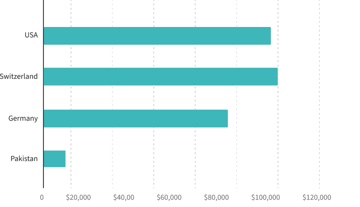 • Pakistan: $10,000 – $30,000