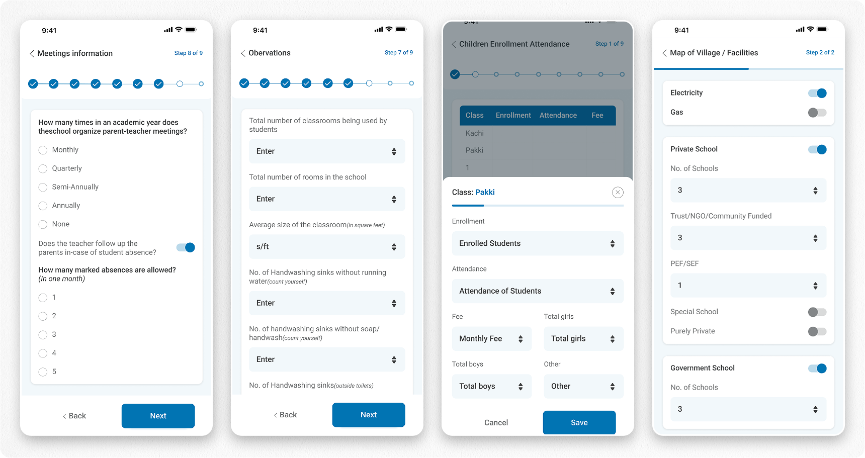 Developed through iterative research and testing, the app addresses on-ground challenges while ensuring data quality and operational efficiency. It empowers survey teams with the tools needed to collect meaningful educational insights.