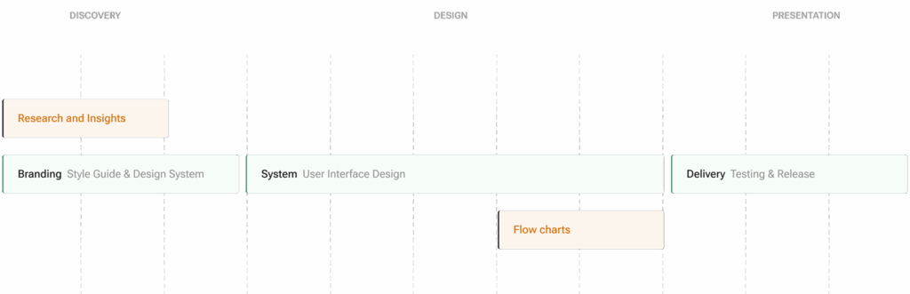 The timeline outlines the key phases of the KP NOC system, ensuring a streamlined approval process for NGO projects. Each stage was meticulously designed to enhance transparency, improve user experience, and ensure compliance with regulatory requirements. The process included extensive research, UI/UX optimization, system testing, and the deployment of a secure and efficient platform for managing NOC applications and project approvals.